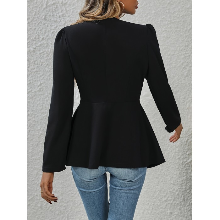 Button Front Flared Blazer, Elegant Notched Collar Long Sleeve Blazer For Office & Work, Women's Clothing